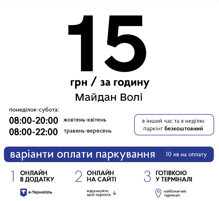 • також готівкою у найближчому терміналі, який розміщений поруч із майданчиками для паркування.