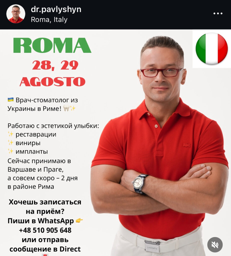 Втім нині лікар змінив напрямок роботи. Свої соцмережі він веде російською мовою, а в Instagram рекламує прийоми у Варшаві та Празі. Нещодавно повідомив, що вже найближчим часом планує консультувати пацієнтів і в районі Рима.